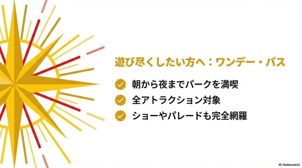 - 森も街も全力で満喫したい・グリーティングも優先利用も楽しみたい → エリートトレーナーズパス