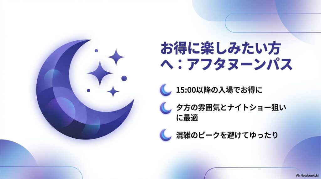 実際のチケット料金は来園日や混雑状況によって変わるので、必ず公式の予約ページで最新の価格を確認してください。最終的な判断が不安な場合は、旅行会社や家計の専門家に予算の相談をしてみるのも一つの方法です。
