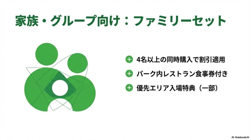 | 家族構成の例 | 想定チケット | チケット代の目安 | 1日の総予算イメージ |