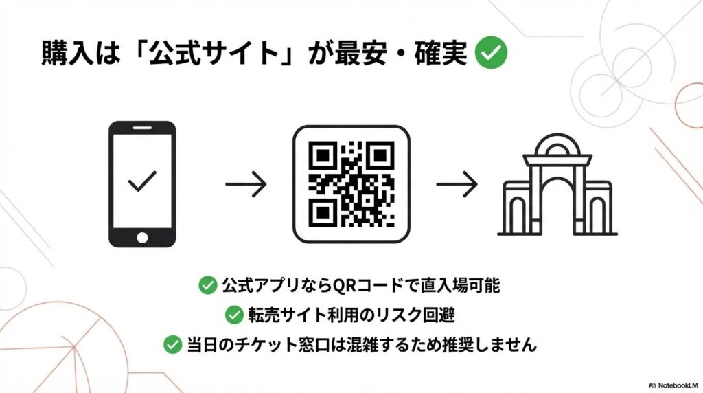旅行のスケジュールをしっかり組みたいなら、「当日どうにかしよう」と考えるのではなく、事前に希望日のチケットを押さえておく前提で動くのが現実的です。