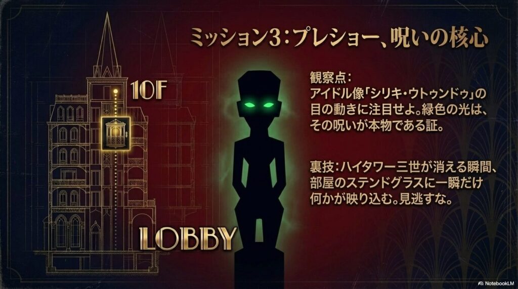 など、ビジュアルと動きの両方がかなり攻めた仕様になっているところです。通常版では、どちらかというと「ホテルの怪奇現象」を見せていく流れでしたが、シャドウオブシリキでは「シリキの怨念と真正面から向き合う」ような構成になっていて、ホラー映画で言えばクライマックスだけを抜き出して強調したような印象があります。