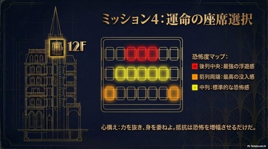 このランダム要素のおかげで、1日に何度乗っても飽きないのがアンリミテッドの強みです。友達同士で行って、「私はレベル13だった!」「いや、こっちはシャドウだったよ!」と結果を報告し合うのもすごく盛り上がります。同じエレベーターに乗っても、前回と今回で微妙に動き方が違ったりするので、「さっきより落下が多く感じた…」なんてことも普通にあります。