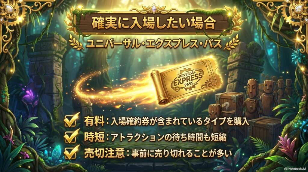 - 有料の入場確約券付きエクスプレス・パスで確実に時間を買う方法