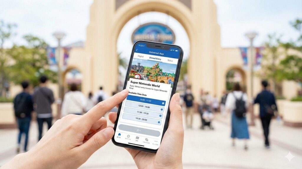 なので、あなたが狙うべきは「スーパー・ニンテンドー・ワールドのエリア入場整理券」を取得すること。これが全ての冒険の第一歩になります。