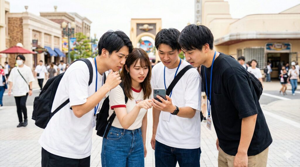 この「完全アプリ化」によって、朝一番に発券所まで全力疾走する必要はなくなりましたが、その代わりに入園直後の「通信環境」と「スマホのバッテリー」が命綱になりました。